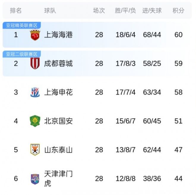 • 随着泰山31掀翻海港,中超最新积分榜:蓉城22绝平无缘重返榜首