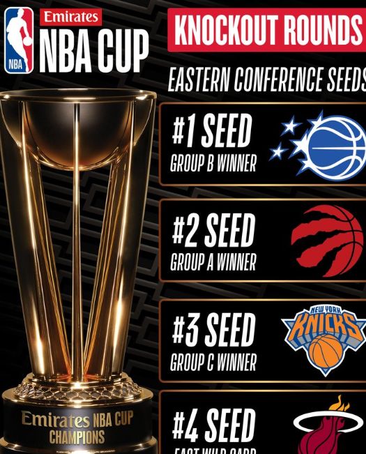 话说回来,今年魔术队在NBA杯的表现堪称无敌,本赛季截止至今,魔术在NBA杯4场全胜,以东部头号种子强势晋级,4场比+64净胜分也是冠绝小组赛。 每年NBA杯都会有一些看似实力一般,但他们就特别会打NBA杯,比如前年的鹈鹕、湖人,去年的雄鹿在其他的常规赛场次都一般,但一打季前赛就特别来劲。 魔术本赛季开季一度掉到坦克区,但如今已经调整回。来再加上NBA杯额外BUFF的加持,莫非会成为NBA杯夺冠最意料之外的大黑马吗? 最后东部4强已经定了,魔术vs热火、猛龙vs尼克斯,除了尼克斯外都是意料之外的队伍。