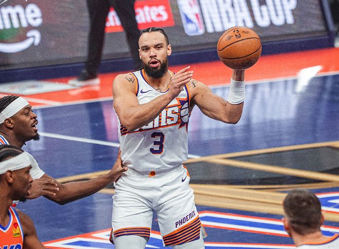 而从美媒《BR》给出的预测来看,雷霆不仅是NBA杯夺冠热门,也是总冠军最大热门候选。雷霆常规赛保底战绩已经来到66胜,预计可以冲击78胜4负的最终战绩,而雷霆拿到总冠军的概率,也已经来到46.2%!回顾过去30年,雷霆是第一支在赛季刚开打还没到两个月,夺冠概率已经突破45%的球队!本赛季各项悬念快被亚历山大带队打没了,而太阳这边,此前的战绩为14胜10负,排名西部第七,球队整体表现不错。不过坏消息是布克因腹股沟伤势,至少还要缺席1周时间,预计和杰伦格林一起,都要等到12月中旬才能复出。