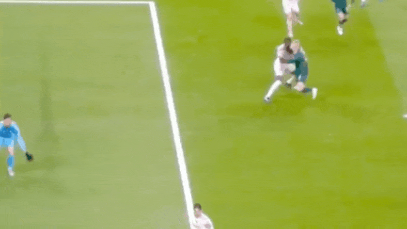 下半场回来,双方继续快节奏的攻防转换,贝林厄姆的挑射、谢尔基劲射,均差之毫厘。阿隆索将居莱尔换上,进一步改善前场的攻势。但是曼城利用两个边路的不断调动,谢尔基突破、传球,以及多库的闪转腾挪,令皇马的后防屡次出现慌乱。然而就当形势大好时,瓜迪奥拉连续做出三人调整,将哈兰德、福登、谢尔基这几名进攻尖刀换下,换上了马尔穆什、萨维尼奥和莱因德斯!换人的时机、人选、思路,都让人有些看不懂。比赛进入最后时刻,皇马全线压上进攻,维尼修斯头球顶偏、空门打高,屡失得分良机。替补登场的恩德里克抢点击中横梁弹出!领先的曼城自从连续换人之后,场边显得有些被动。最终全场比赛结束,曼城守住胜果拿下比赛。